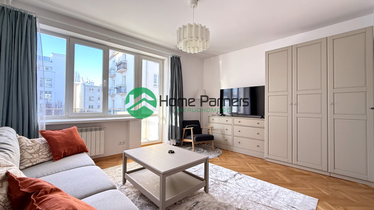 A spacious and bright studio apartment with a balcony and a separate kitchen, located in an excellent location in Warsaw’s Mokotów district on Lewicka Street in a tenement house with a new facade.